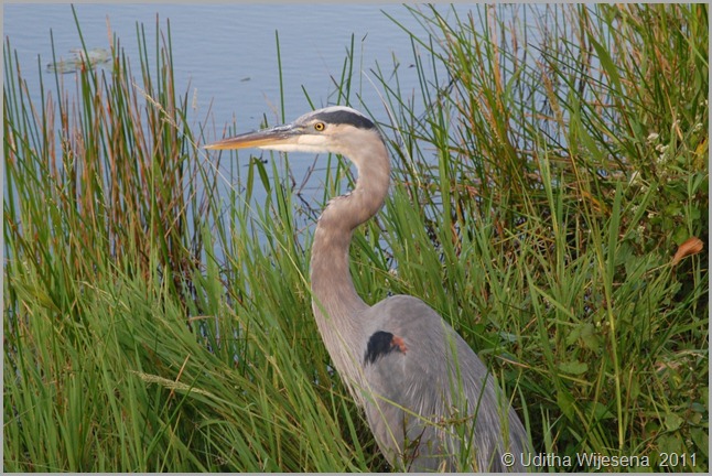 | The Great Blue Heron was at touching distance three feet away from the board walk. It was seen in the same location when returning after one and a half hours walking. Visitors respect the habitat and the fauna........ thus is the healthy coexistence |